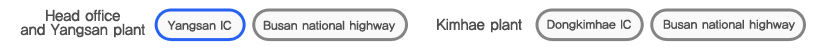 [Head Office and Yangsan Factory] Address: 574-3 / (Sanmak-dong) Sanmakgongdanbuk 9-gil 8, Yangsan-si,Gyeongsangnam-do, Korea